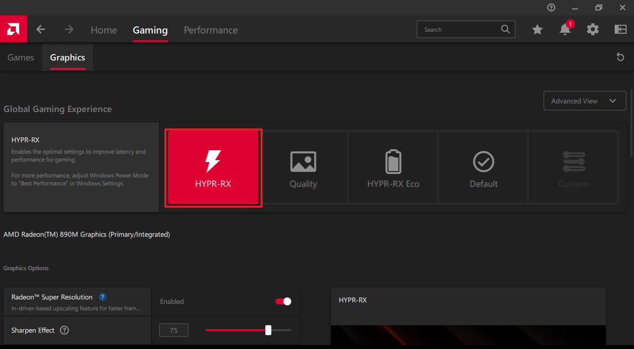 Мы рекомендуем настройку ‘HYPR-RX’ для достижения наилучшего игрового опыта, но она доступна только на Xbox Ally X. Если у вас стандартная Xbox Ally, вы не увидите опцию ‘HYPR-RX’. Вместо этого вы можете выбрать настройку ‘Performance’.