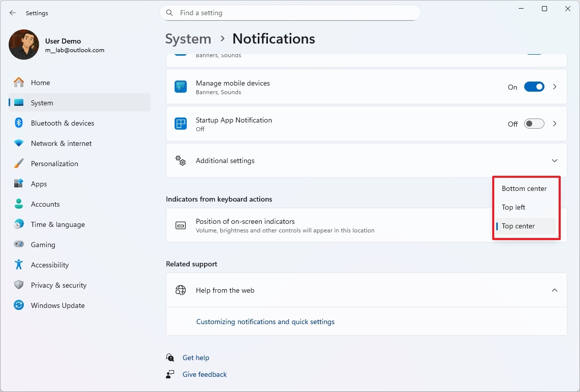 Вы по-прежнему не можете перемещать саму панель задач Windows, но Windows 11 позволяет изменить место, где отображаются определенные значки на экране. Теперь вы можете расположить индикаторы, такие как яркость, громкость и режим полета, в нижней центральной, верхней левой или верхней центральной части дисплея.
