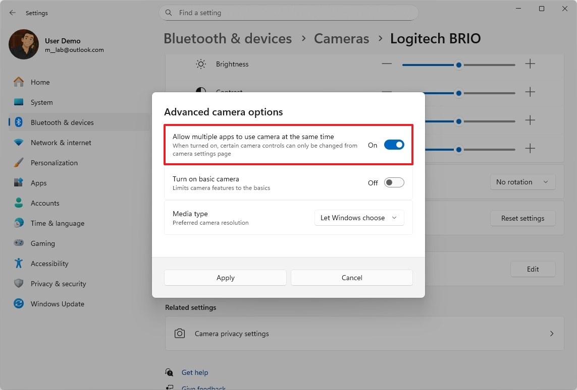 Вы можете разрешить нескольким приложениям одновременно использовать вашу камеру, перейдя в Настройки > Bluetooth и устройства > Камеры. Затем выберите свою камеру и перейдите в расширенные настройки, чтобы найти эту опцию.
